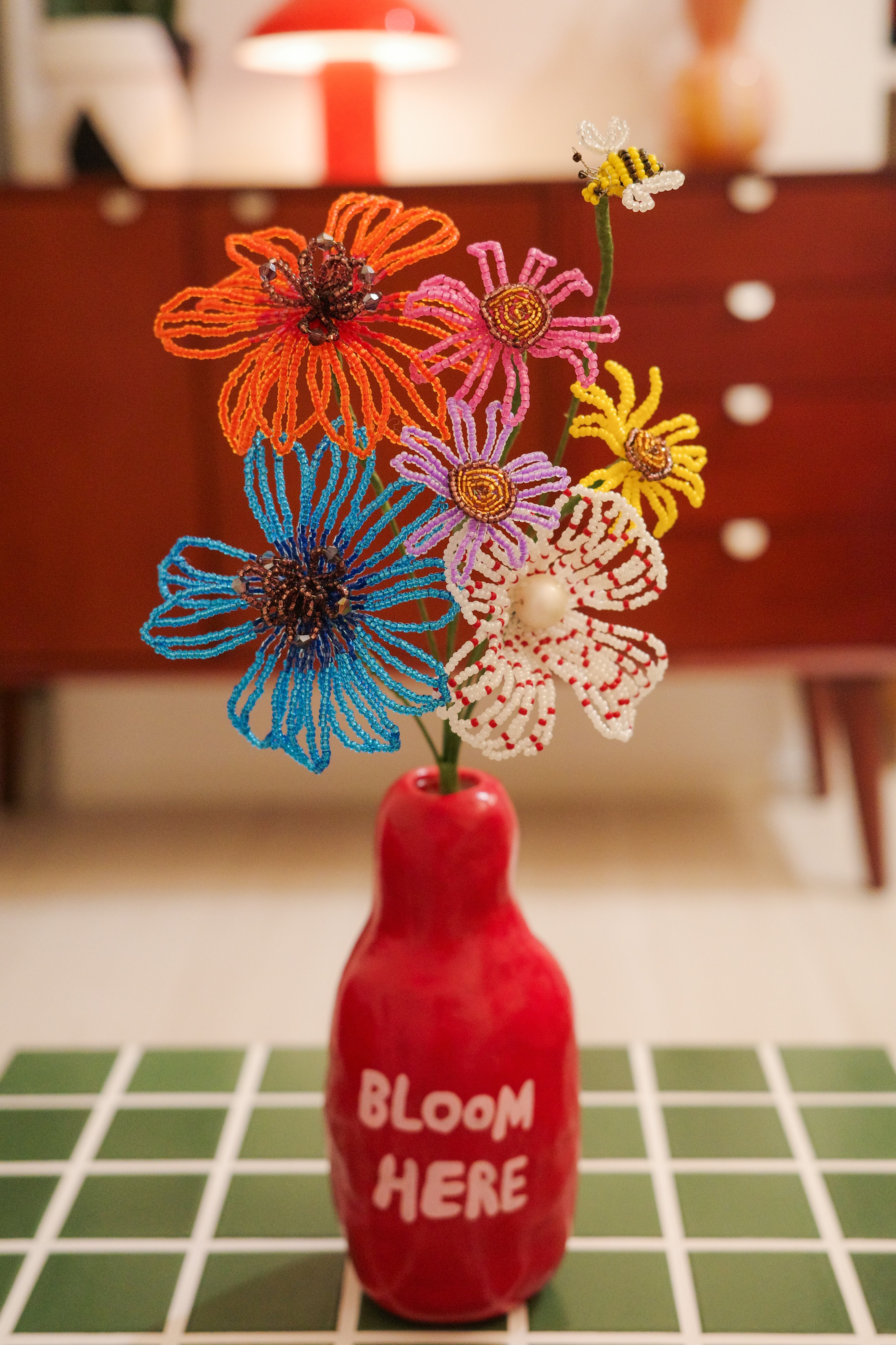 ・ビーズフラワーは、お花の部分にビーズを使用しているため、重みがあります。花瓶に挿して飾る際は、安定感のある重めの花瓶をご使用いただくことをおすすめいたします。軽量の花瓶をご使用の場合、転倒の恐れがございますので、十分ご注意ください。